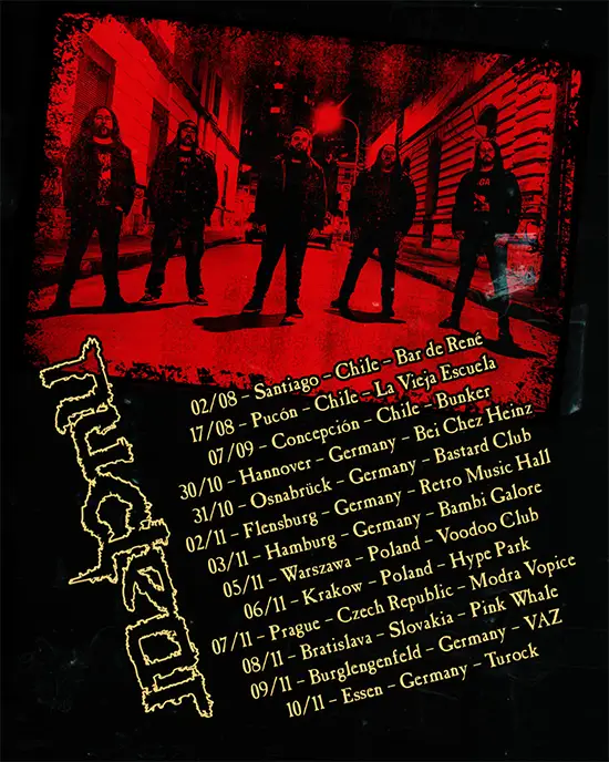 Finalmente, en octubre y noviembre NUCLEAR aterriza por octava vez en tierras europeas para unirse a la gira “Skullblast European Tour 2024” como invitados especiales de los clásicos thrashers alemanes Assassin. Junto a Burden Of Grief como acto soporte, la gira llevará el metal de los chilenos a escenarios de Alemania, Polonia, Eslovaquia y República Checa, marcando un nuevo hito en la ya extensa relación de los nacionales con el público del viejo continente.